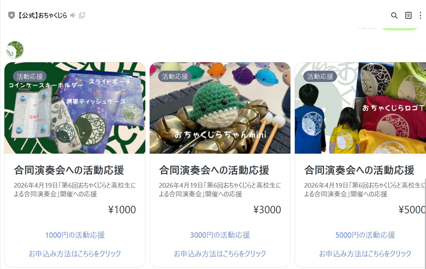 吹奏楽団おちゃくじらの公式LINEができました 2026年1月11日 最終更新日時 : 2026年1月11日 ochakujira 吹奏楽団おちゃくじらへのお問い合わせ・演奏会へのご協賛、ご支援窓口として、公式LINEができました。下記QRコードより公式LINEの追加をお願いいたします