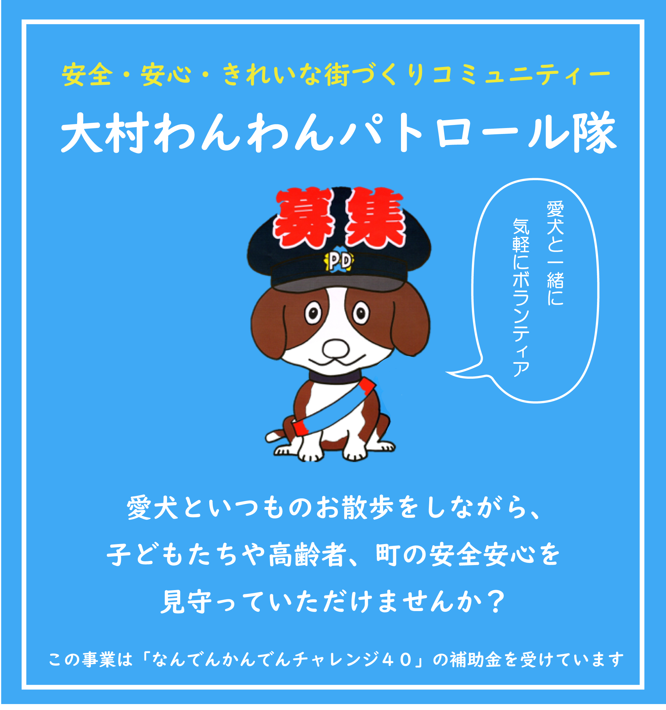 愛犬といつものお散歩をしながら、子どもたちや高齢者、町の安全安心を見守っていただけませんか?